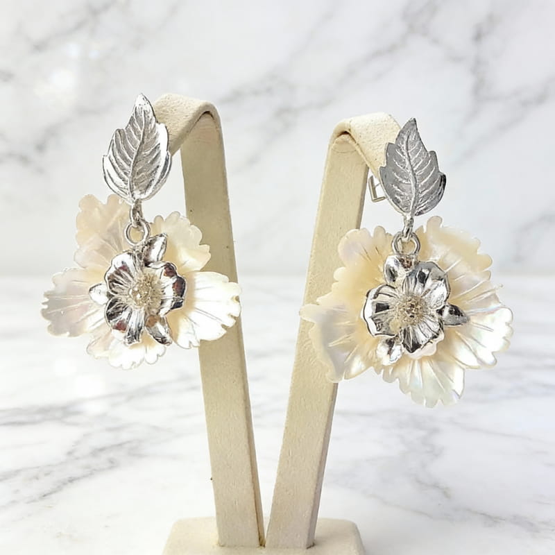 Pendientes realizados a mano con flor de nácar en plata de 925ml.