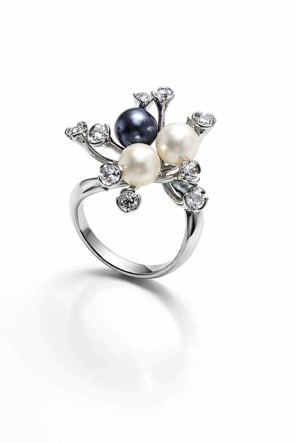 Sortija de oro blanco y perla de Tahití.