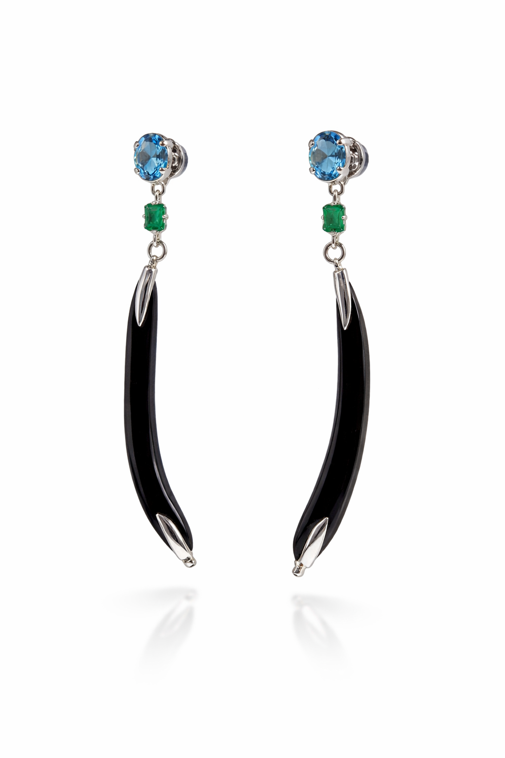 La armonía perfecta entre color, luz y elegancia toma forma en estos pendientes de exquisita presencia. Elaborados en plata de ley 925, combinan la intensidad vibrante de las esmeraldas naturales con la serenidad luminosa del topacio azul, creando una composición refinada de belleza atemporal.