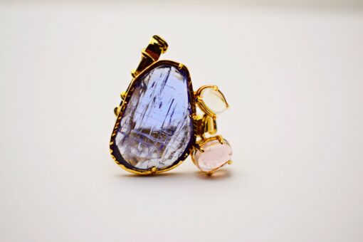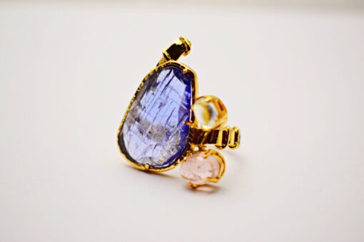 Sortija de oro de ley (750ml) montada a mano con piedras de una calidad excepcional como son la tanzanita